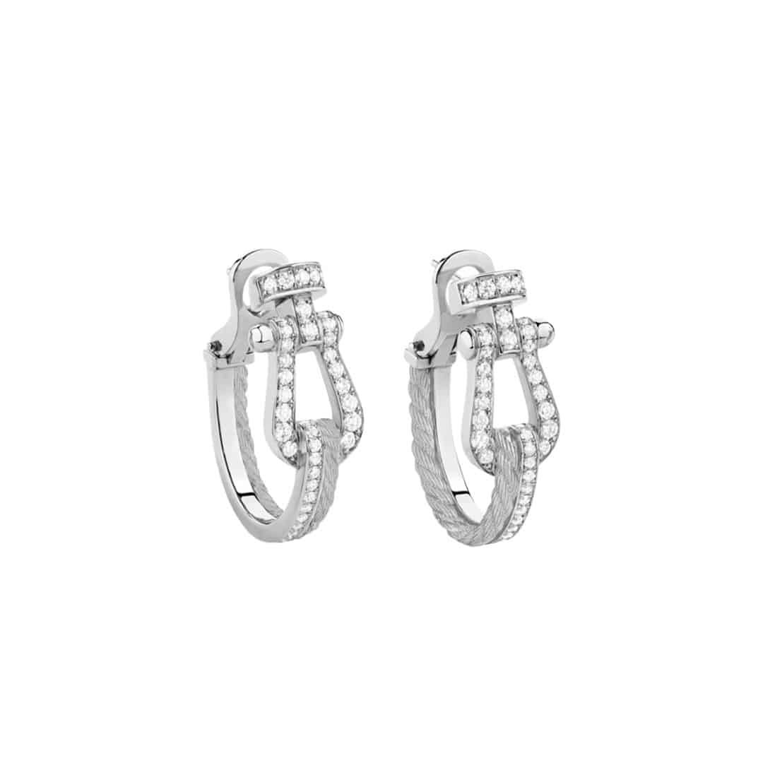 Pendientes Fred Force 10 Rise GM de oro blanco y pavée de diamantes.