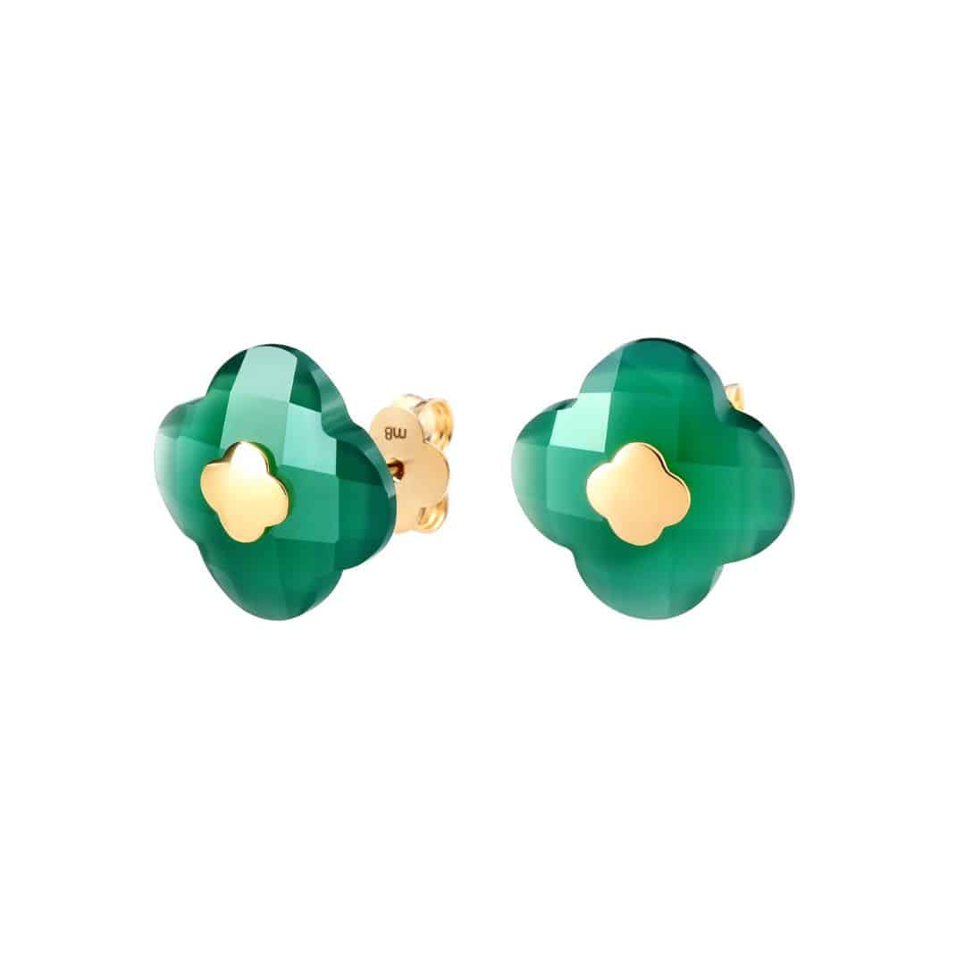 Pendientes Morganne Bello chips, trébol, ágata verde y oro amarillo.