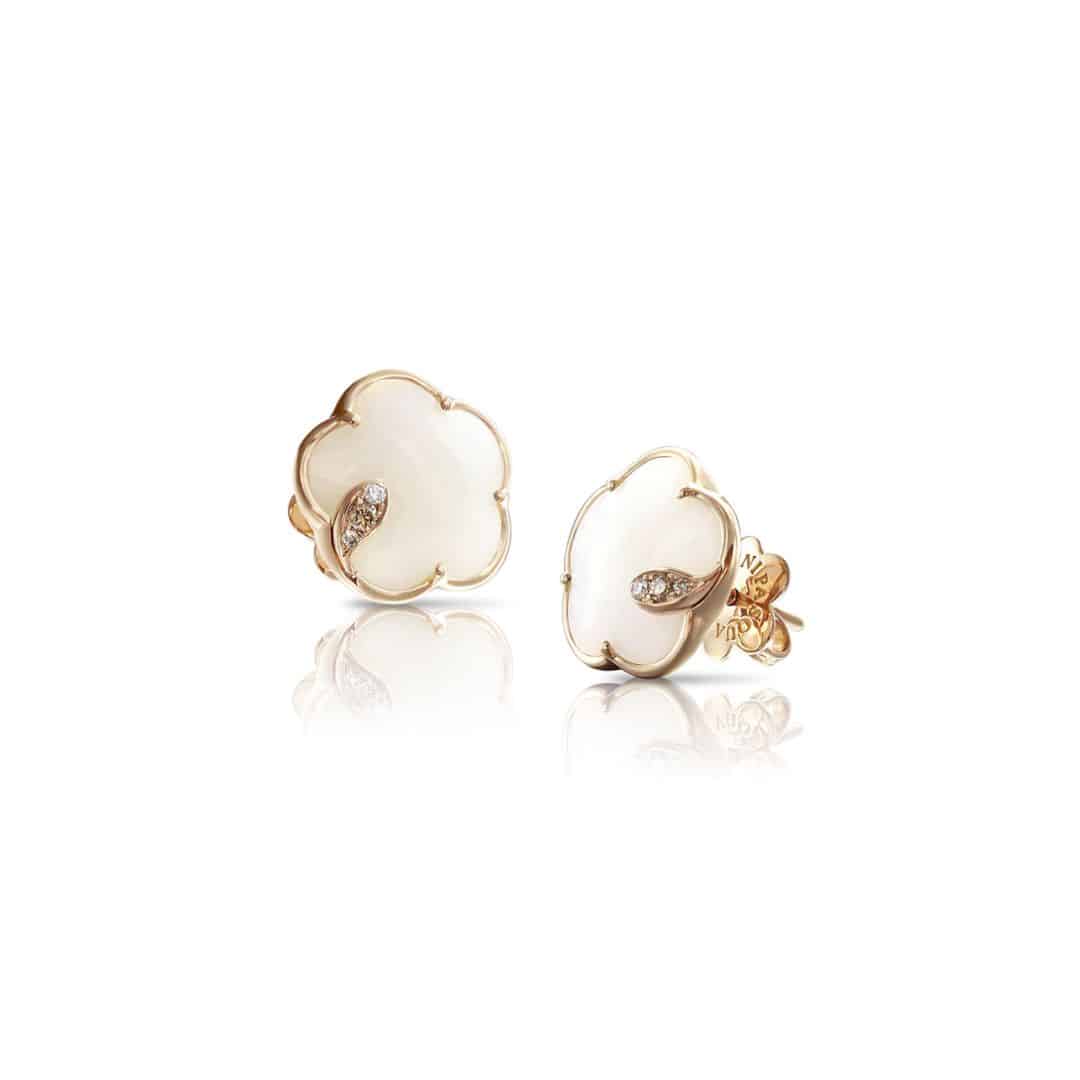 Pendientes Pasquale Bruni Petit Joli de oro rojo, diamantes y ágata blanca.