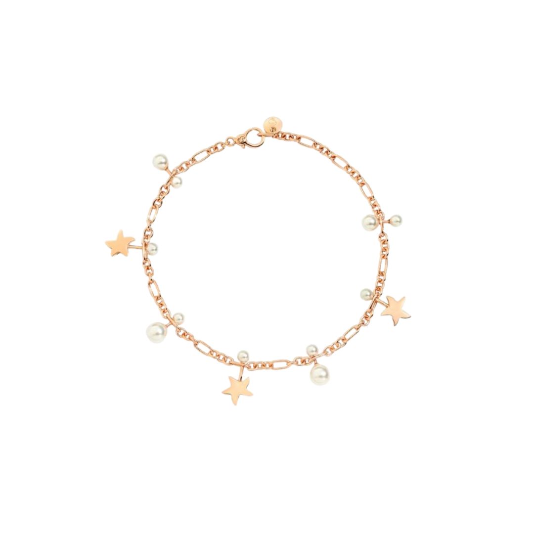 Pulsera DoDo Stellina de oro rosa y 11 perlas de cristal.