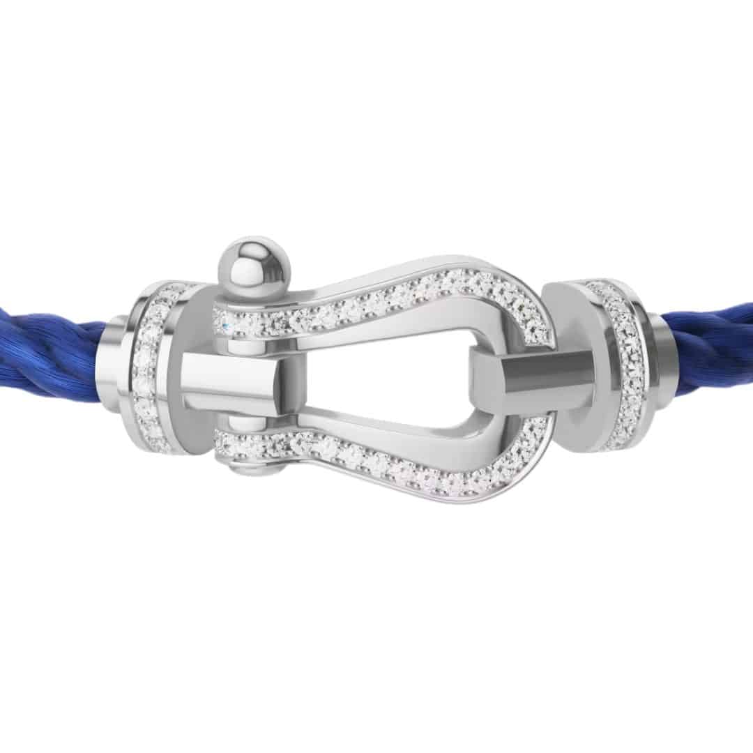 Pulsera Fred manilla Force 10 grande de oro blanco y pavée diamantes. Consultar la variedad de colores disponibles de cables