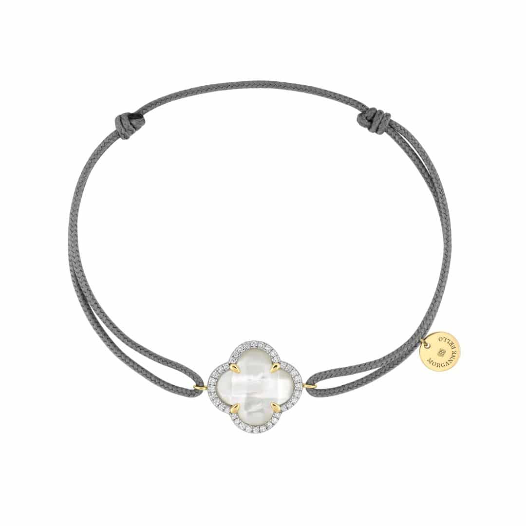 Pulsera Morganne Bello Victoria Diamants, cordón gris, de oro amarillo, diamantes y nácar blanco