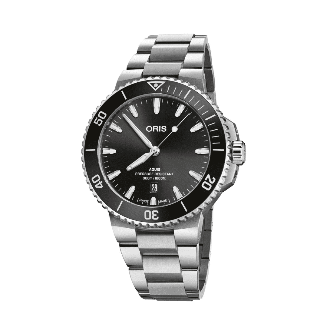 Reloj Oris Aquis Date de 43,50 mm de diámetro, caja y pulsera de acero, esfera negra