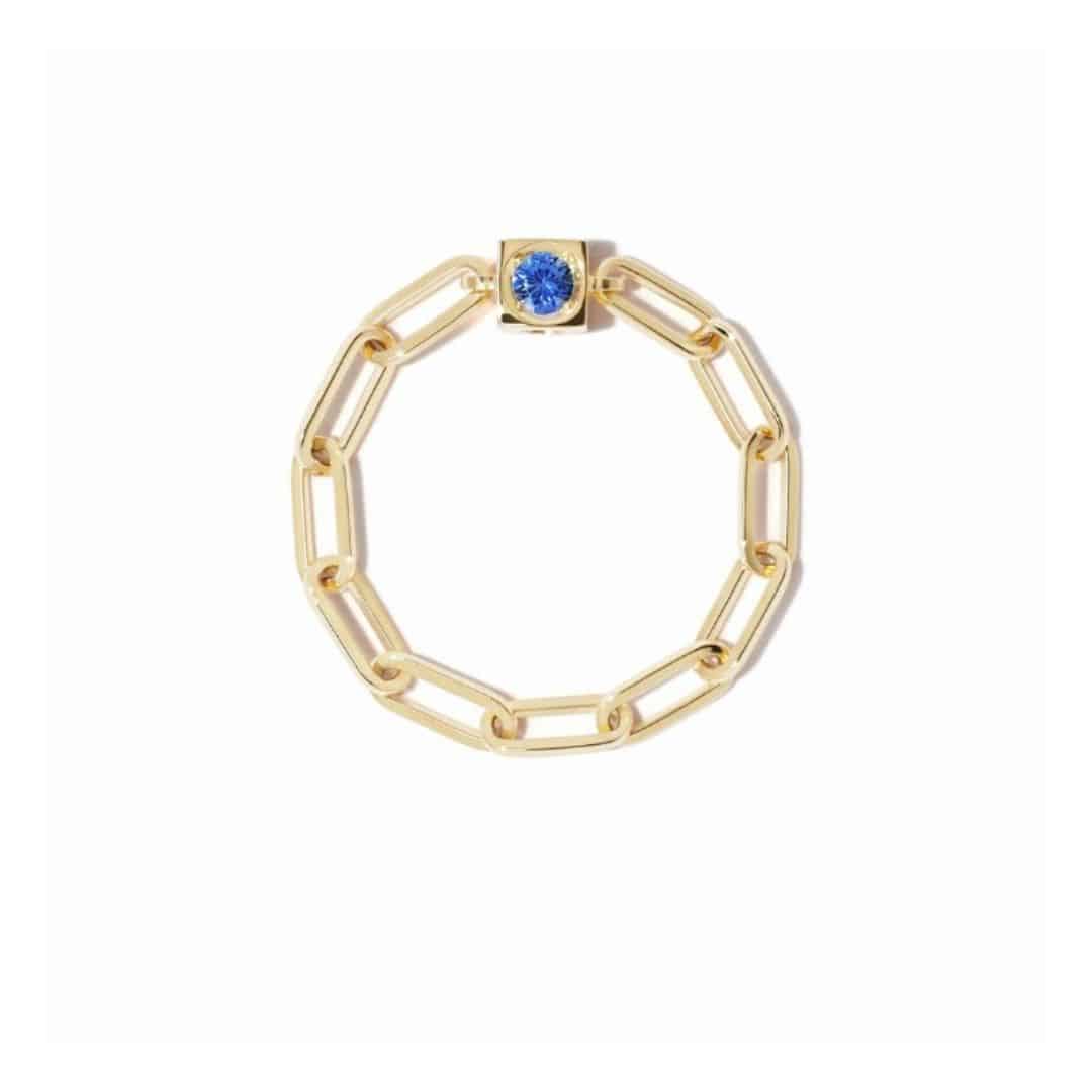 Le bague dinh van Le Cube chaîne S en or jaune 18K avec saphir bleu se distingue par son design moderne et élégant. Son style intemporel reflète l’équilibre idéal tant apprécié par la Maison.