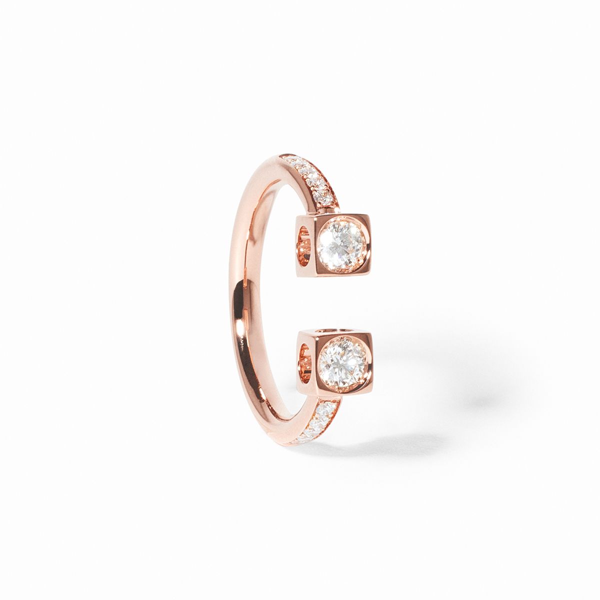 Bague dinh van Le Cube Diamant grand en or rose et pavée diamants.
