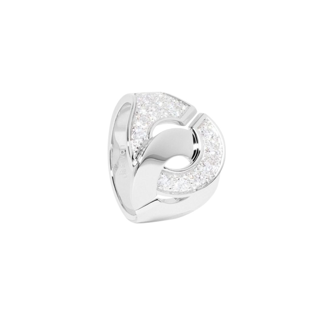 Bague dinh van Menottes R16 en or blanc, semi pavée de diamants.