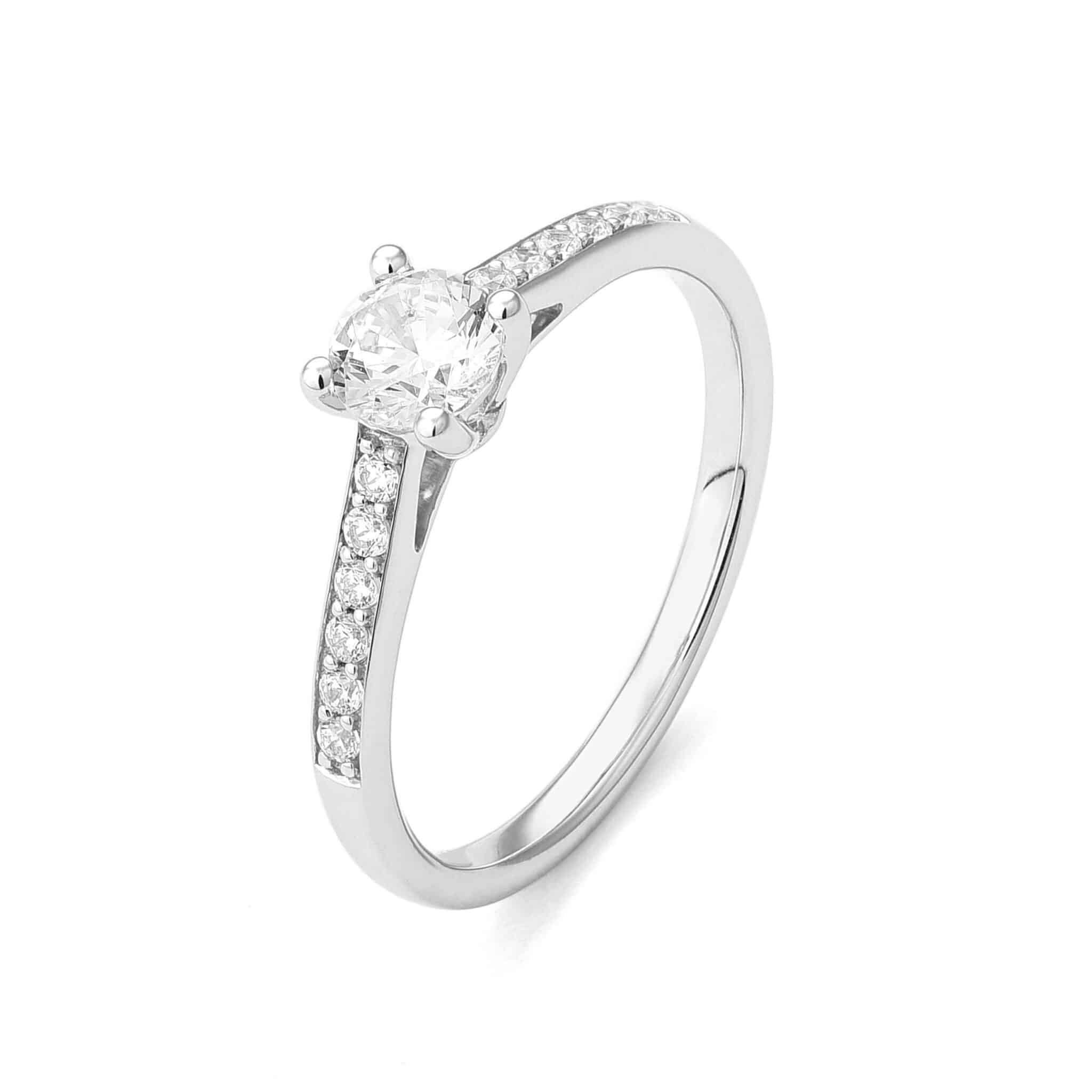 Bague Maison Roca & Tracemark en or blanc, diamant taille brillant et demi pavée de diamants avec Tracemark et certificat GIA.