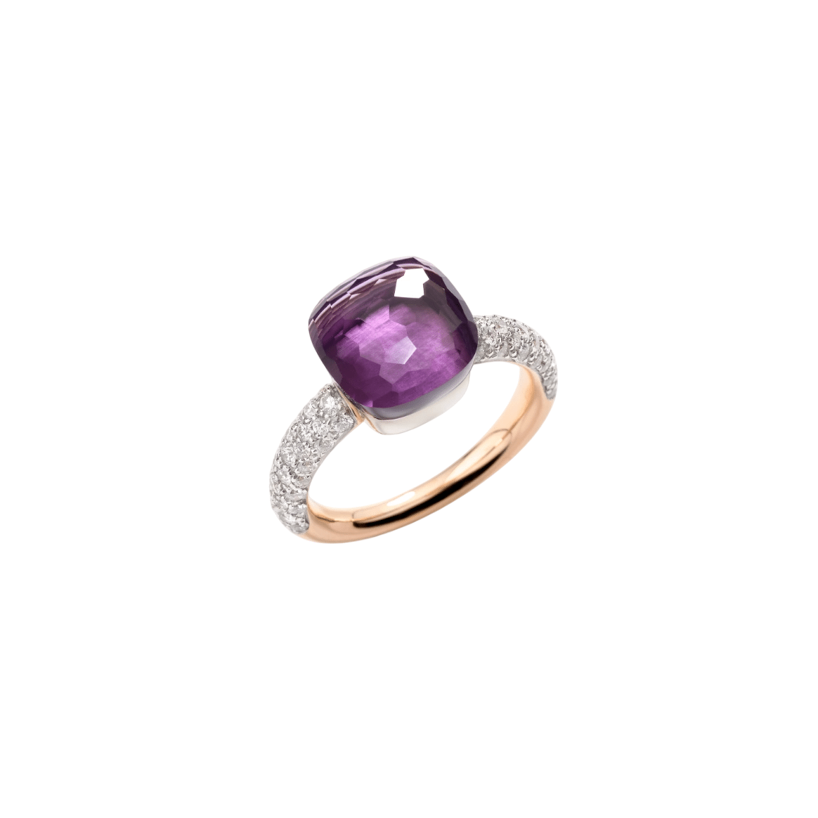Bague Pomellato Nudo Classic en or rose et blanc, améthyste et diamants.