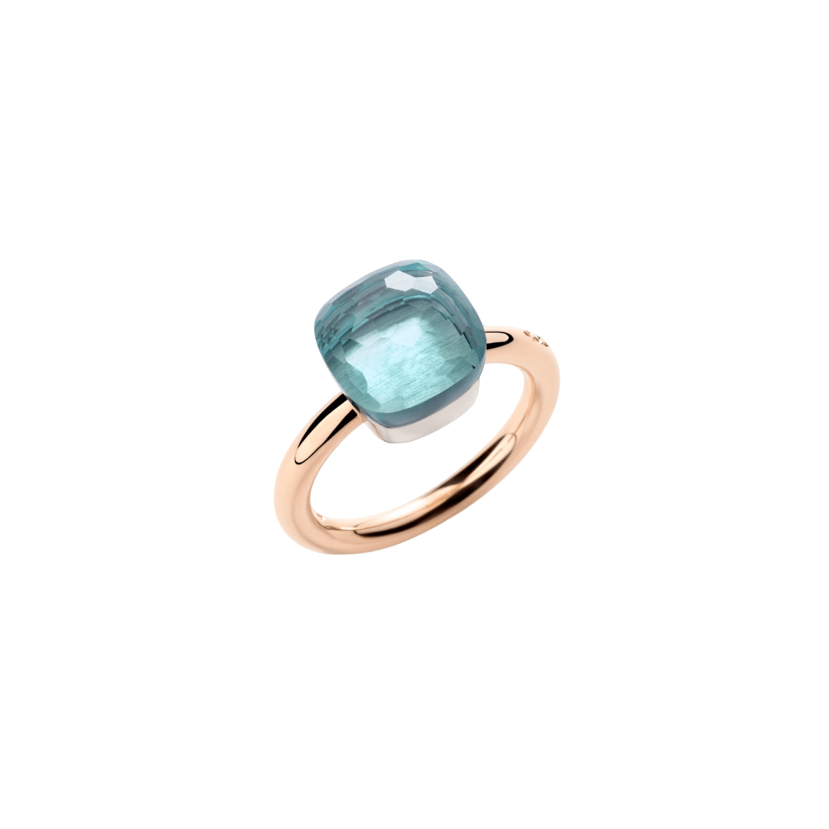 Bague Pomellato Nudo Classic en or rose et blanc et topaze bleu.