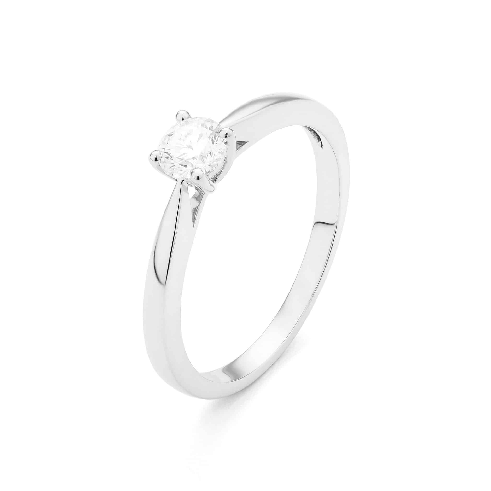 Bague solitaire Maison Roca & Tracemark en or blanc et diamant taille brillant, avec Tracemark et certificat GIA.
