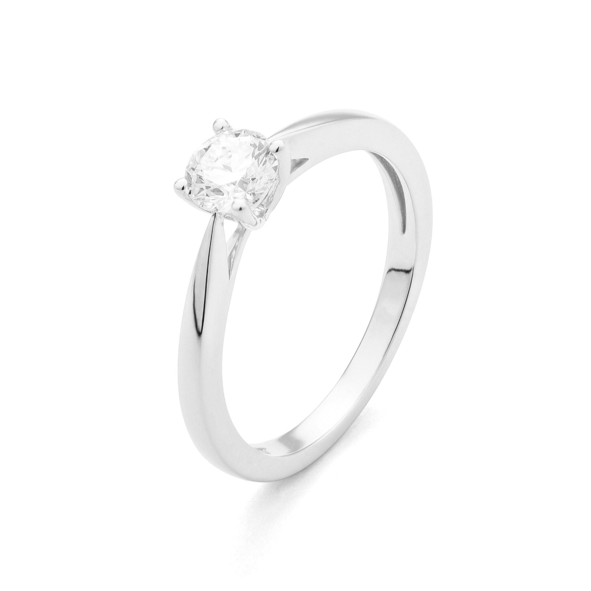 Bague solitaire Maison Roca & Tracemark en or blanc et diamant taille brillant, avec Tracemark et certificat GIA.