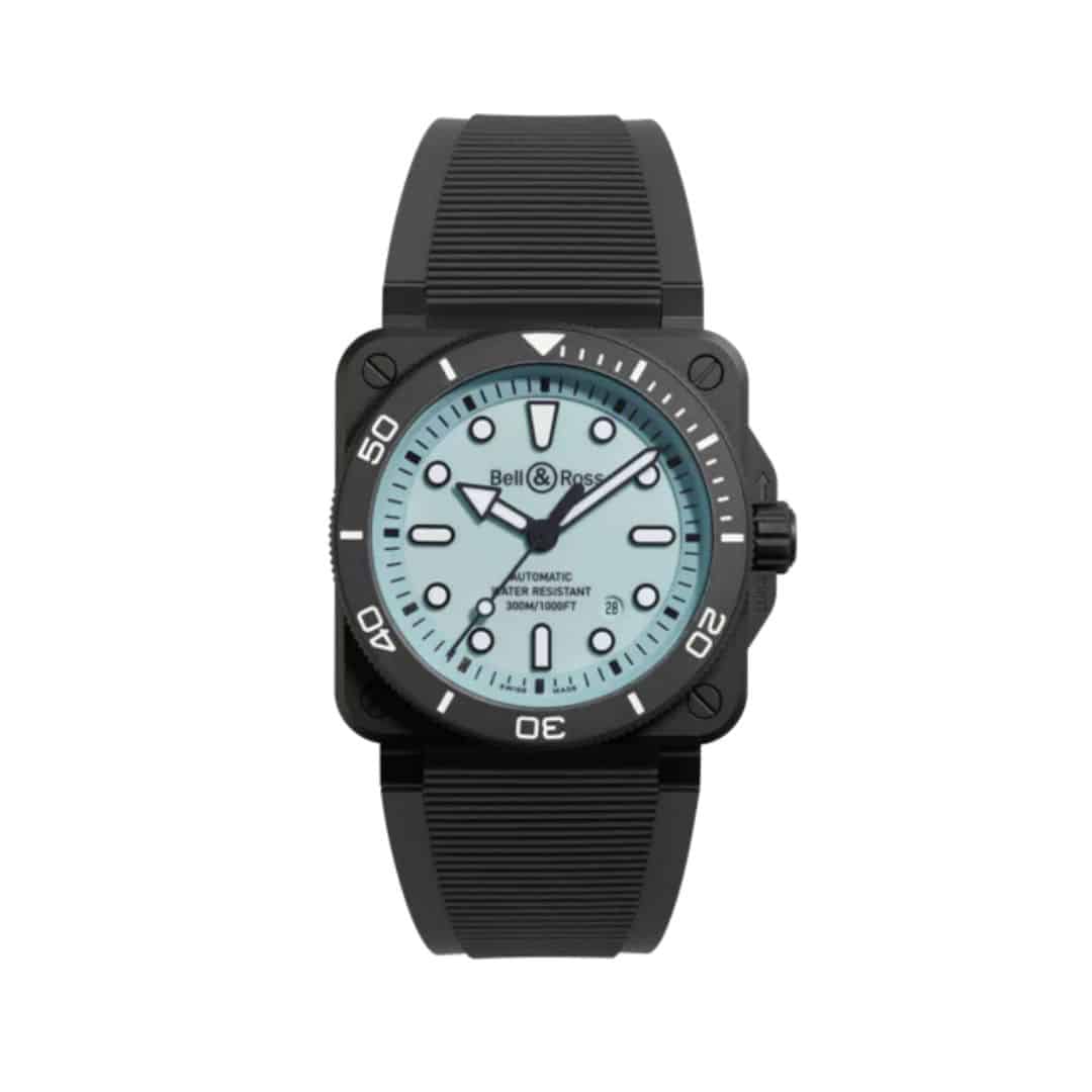 La Bell & Ross BR 03 Diver Lum Ceramic est une montre de plongée professionnelle qui se distingue par sa lisibilité exceptionnelle, même dans l’obscurité totale. Son boîtier en céramique noir mat de 42 mm offre une excellente résistance aux chocs et à l’usure, avec une finition antireflet idéale pour les environnements sous-marins.