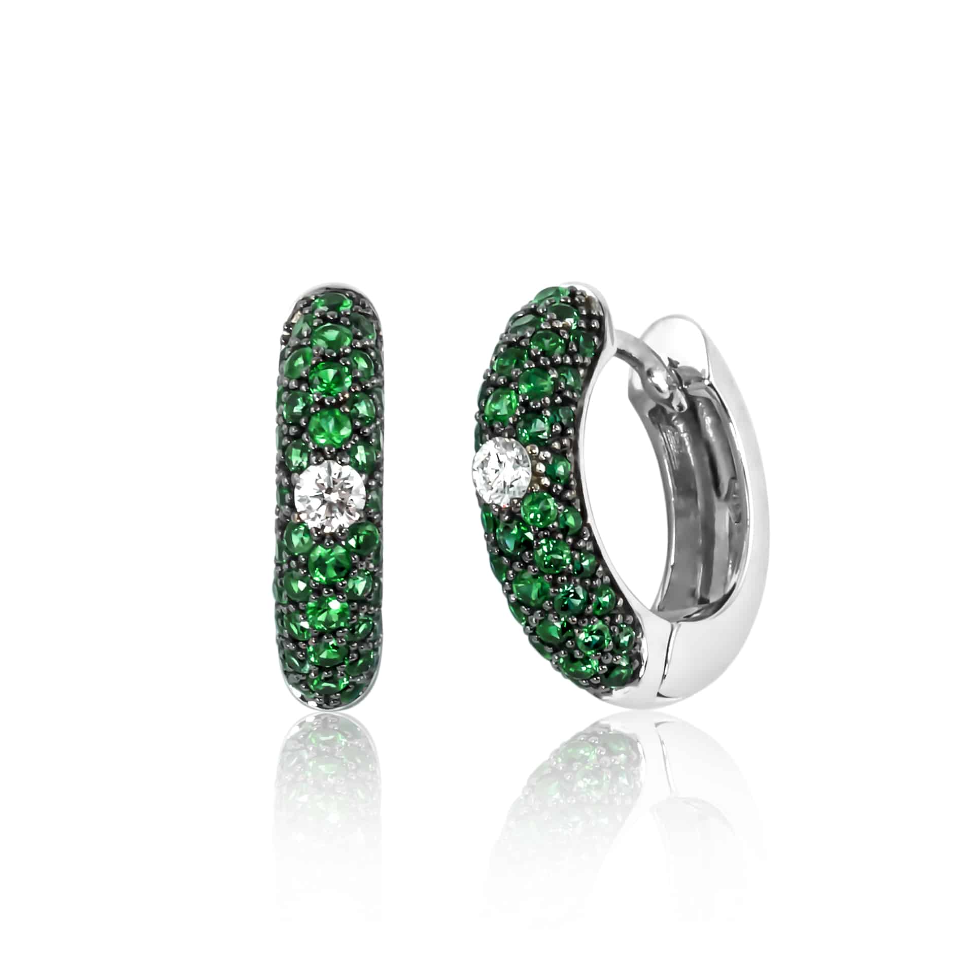Boucles d’oreilles Adolfo Courrier Mela en or blanc, diamants et tsavorite.