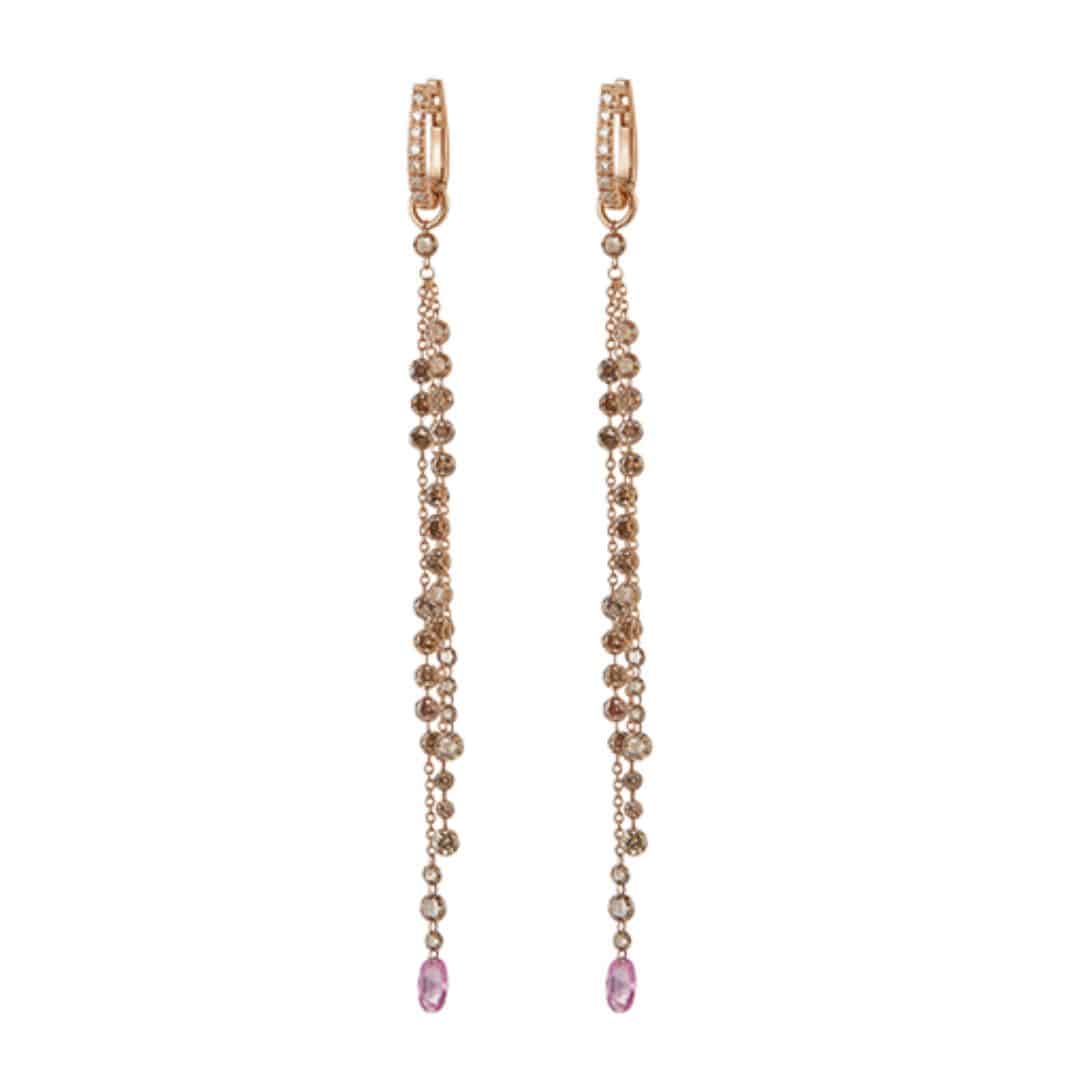 Boucles d’oreilles Cervera Petit Four diamonds en or rose, diamants et saphirs rose.