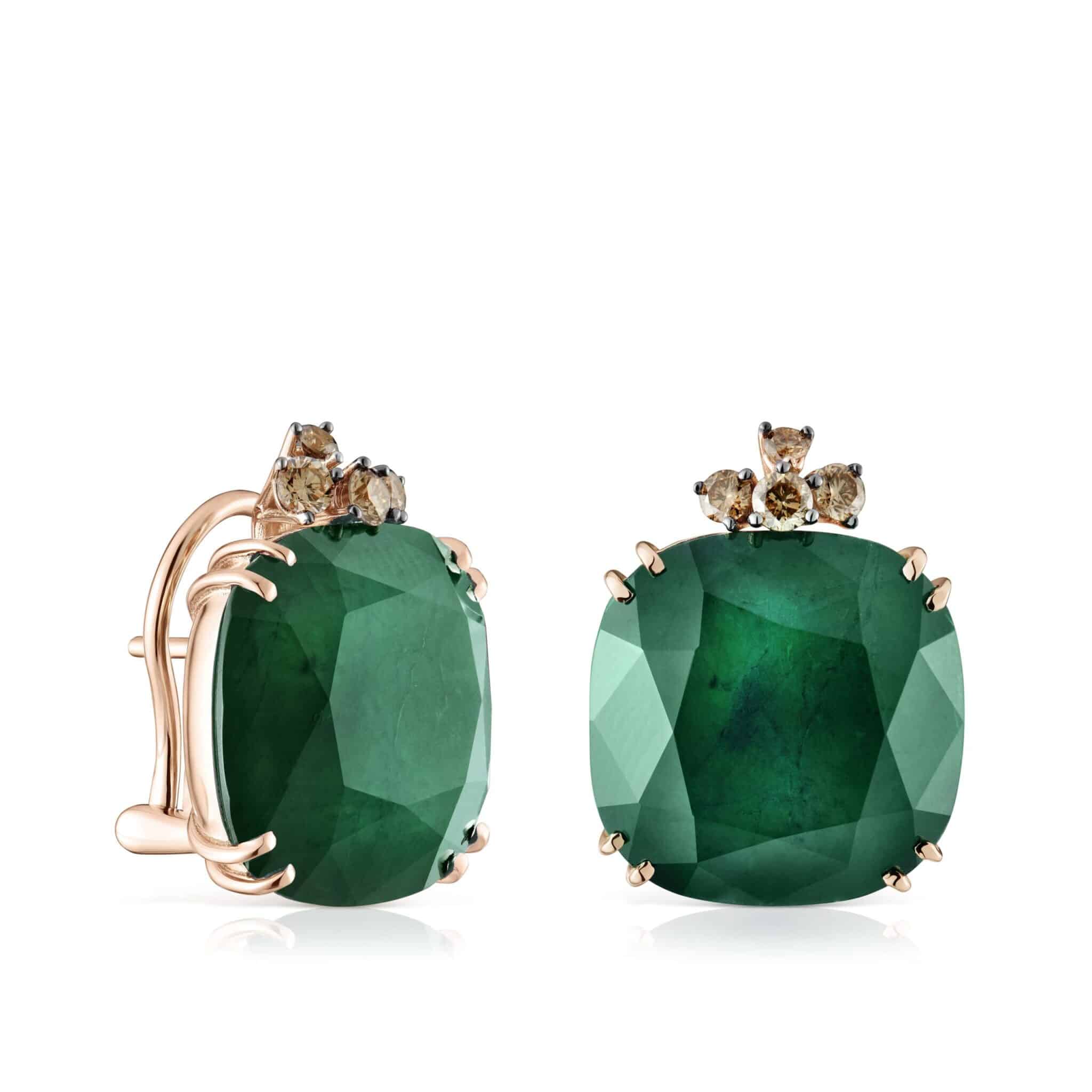 Boucles d’oreilles Cervera Tamo en or rose, diamants marron, émeraude, cristal de roche et nacre.