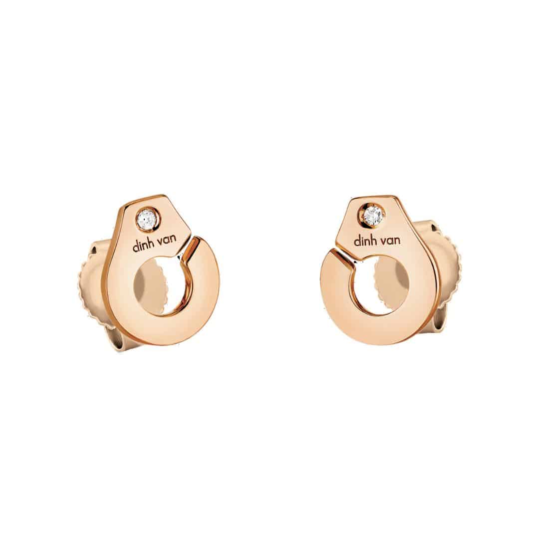 Boucles d’oreilles dinh van Menottes R7,5 en or rose et diamants.