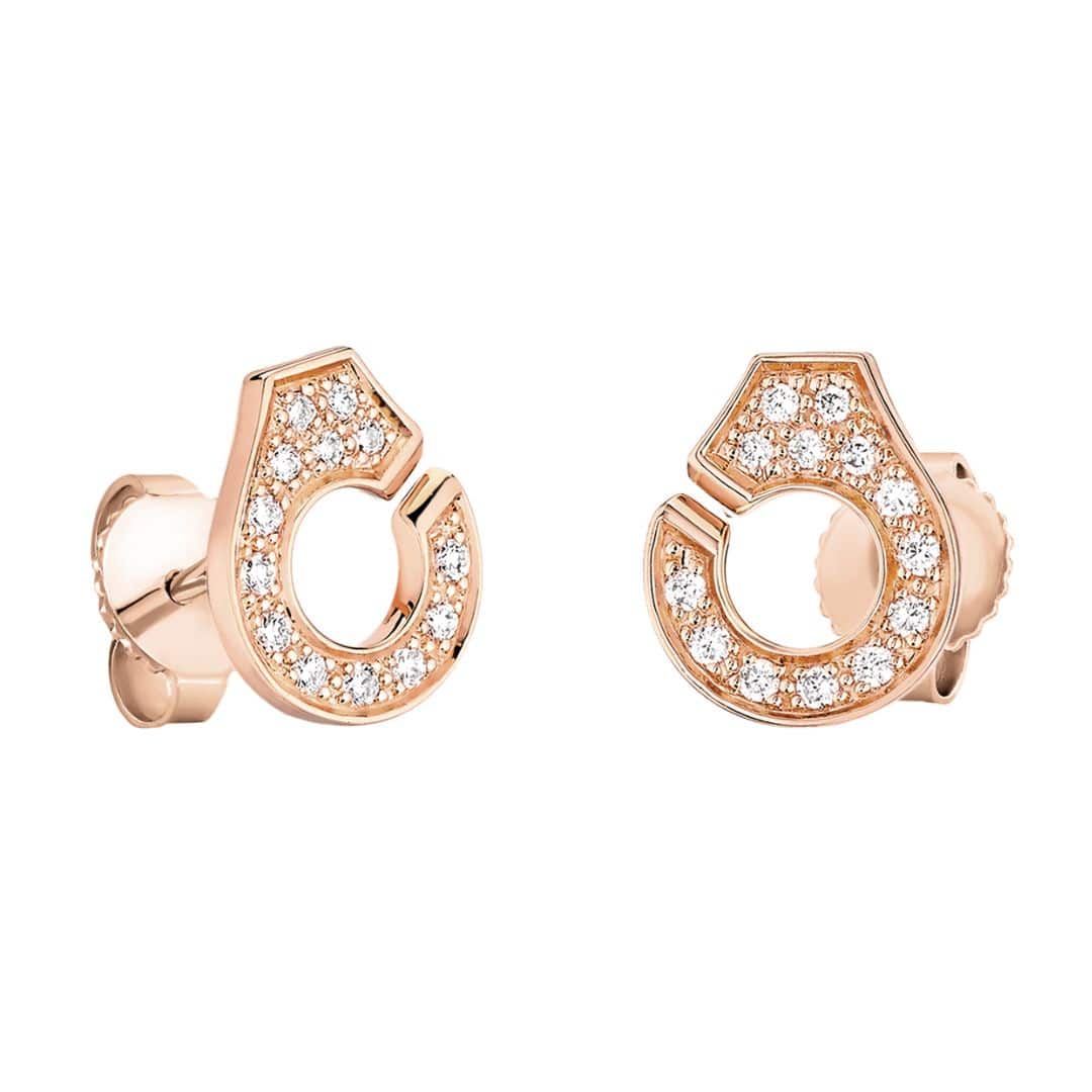 Boucles d’oreilles dinh van Menottes R7,5 en or rose et pavée de diamants.