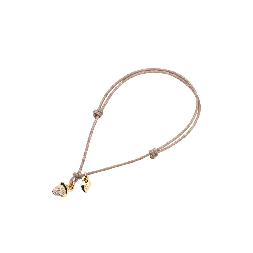 Bracelet Tamara Comolli My Mikado en or jaune et pavé de diamants, avec cordon taupe.