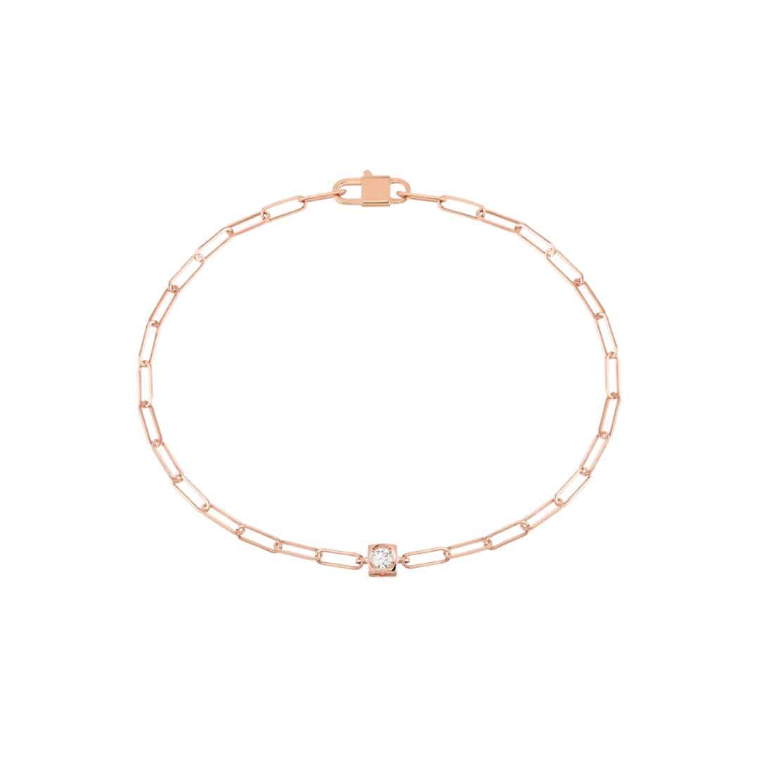 Bracelet dinh van chaîne Le Cube Diamant en or rose.