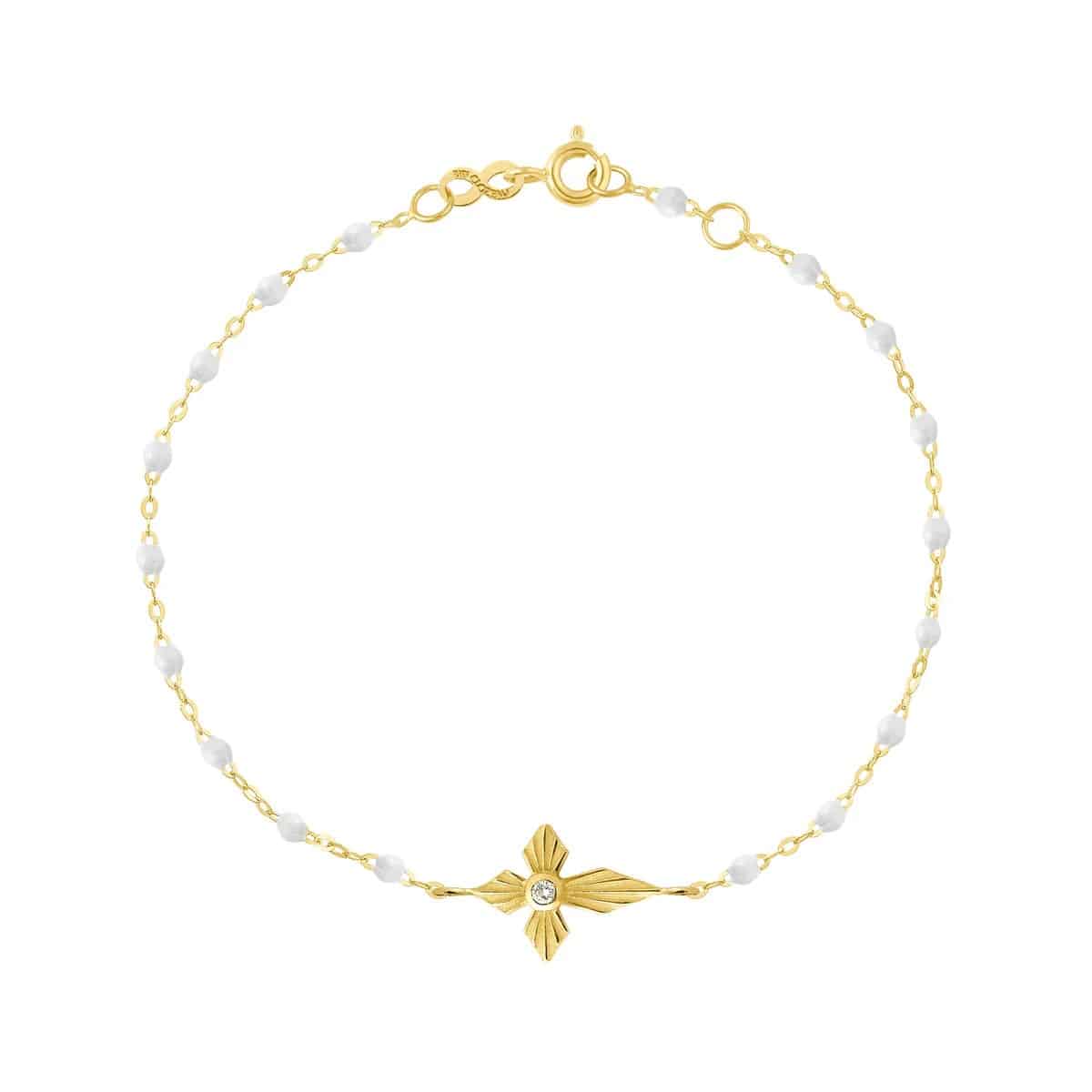 Collier gigi Clozeau Croix Lumiere de 17 cm en or jaune, diamant et résine blanche.