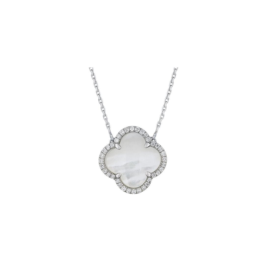 Collier Morganne Bello Victoria, nacre blanc, or jaune et diamants.