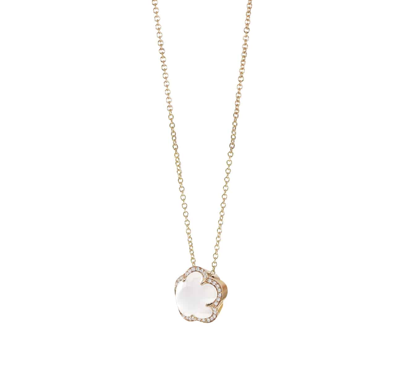 Collier Pasquale Bruni Bon Ton en or rouge, diamants, quartz blanc nacre.