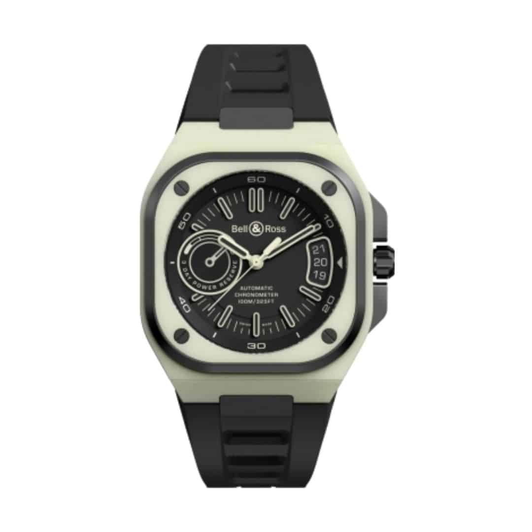 Montre Bell & Ross BR-X5R Lum verte de 41 mm, boîtier en titane et bracelet en caoutchouc, cadran noir et mouvement mécanique automatique