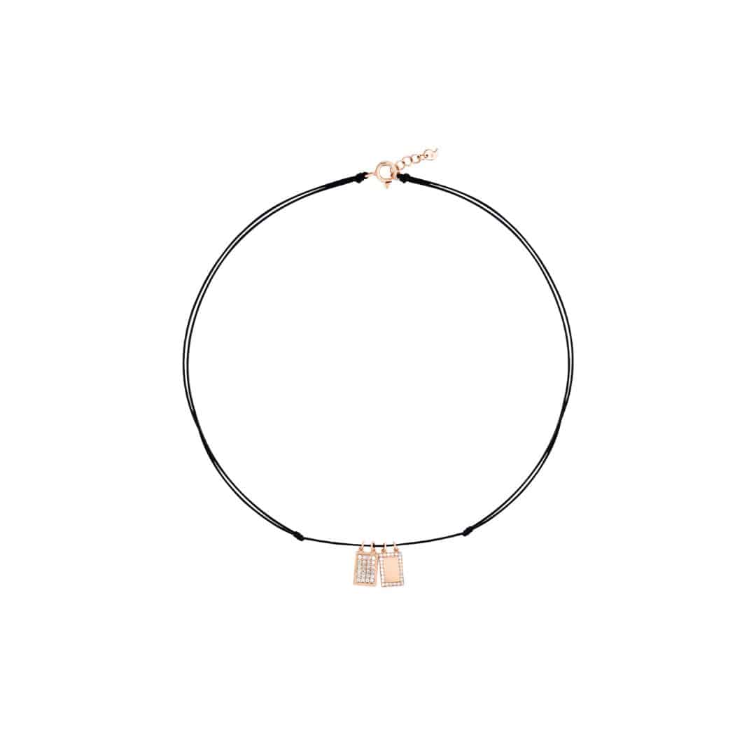 Pendentif Cervera Sacre en or rose et diamant avec chaîne.