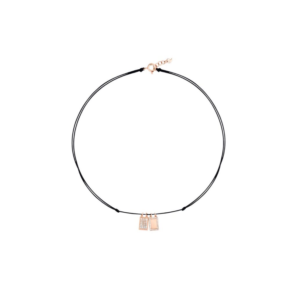 COLLIER CERVERA PETIT FOUR DIAMONDS 42 CM, EN OR ROSE ET DIAMANTS NOIRS