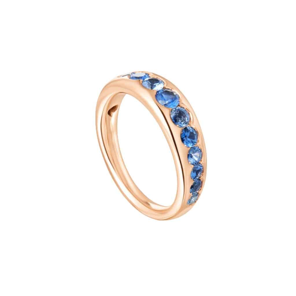 BAGUE CERVERA BASE EN OR ROSE ET SAPHIRS BLEU