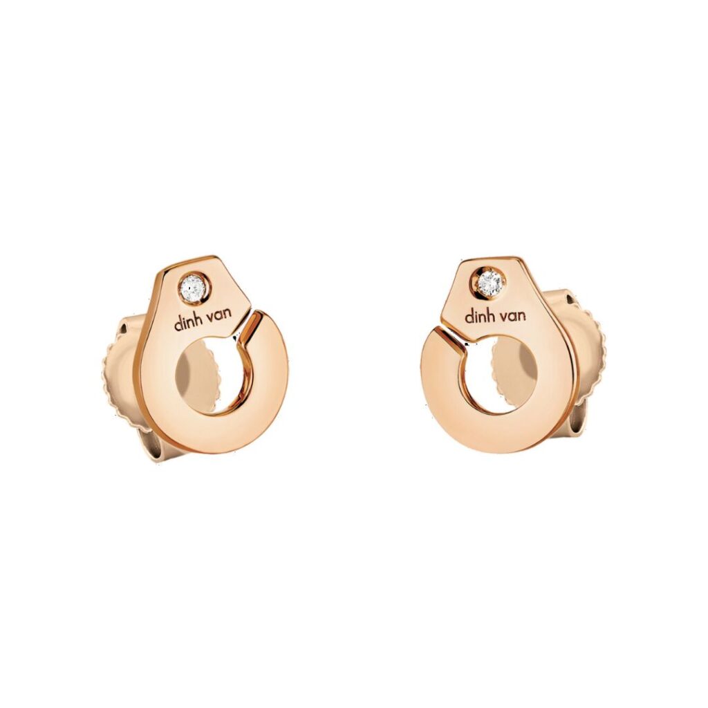 BOUCLES D’OREILLES DINH VAN MENOTTES R7,5 EN OR ROSE ET DIAMANTS