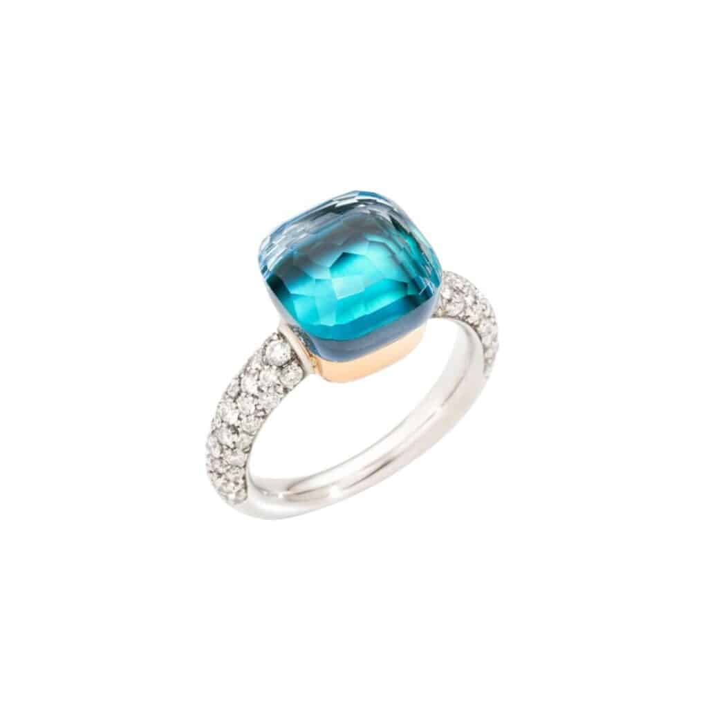 BAGUE POMELLATO NUDO CLASSIC EN OR ROSE ET BLANC, TOPAZE, AGATE ET DIAMANTS