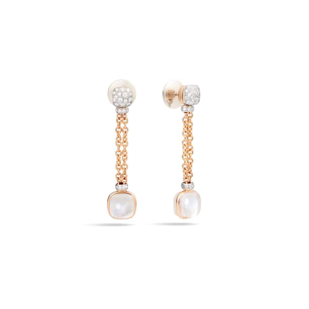 BOUCLES D’OREILLES POMELLATO NUDO CLASSIC EN OR ROSE ET BLANC, QUARTZ, CALCÉDOINE ET DIAMANTS