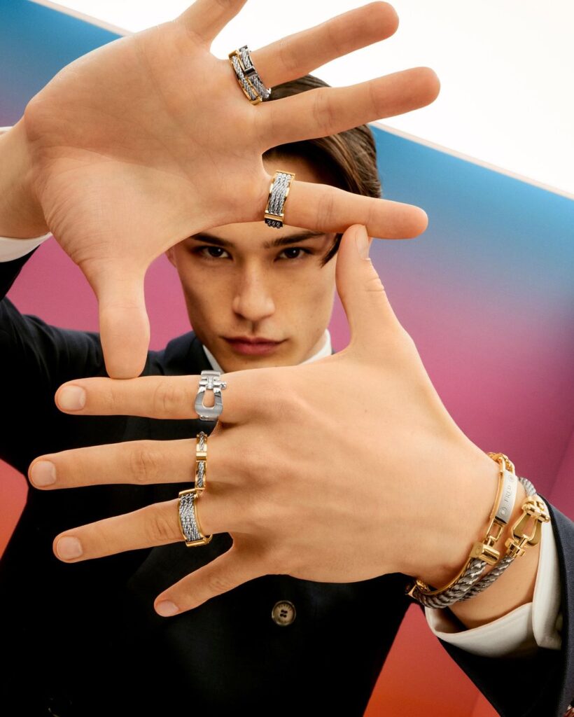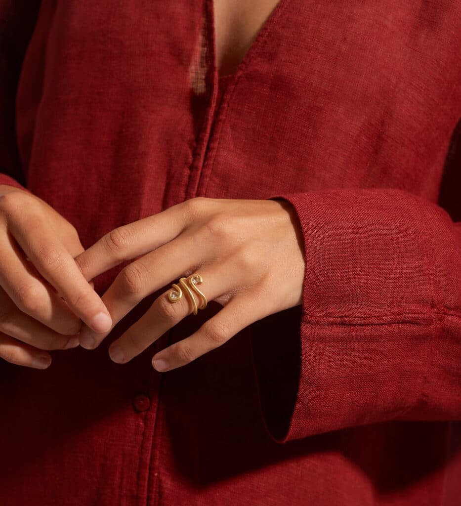 L’or —blanc, groc o rosa— és un metall noble i altament resistent. Col·leccions com les de dinh van, MISUI o FRED, elaborades amb or de 18k de gran qualitat, suporten bé la calor i la suor.
